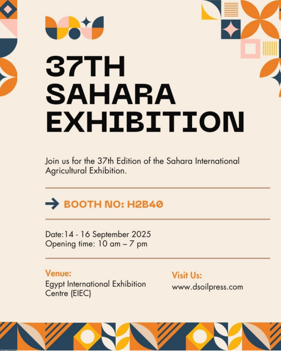鄭州鼎盛機械有限公司,將于2025年9月14至16日在埃及國際展覽中心,第37屆撒哈拉國際農(nóng)業(yè)展覽會參展,和各國友人交流分享榨油機各種知識。